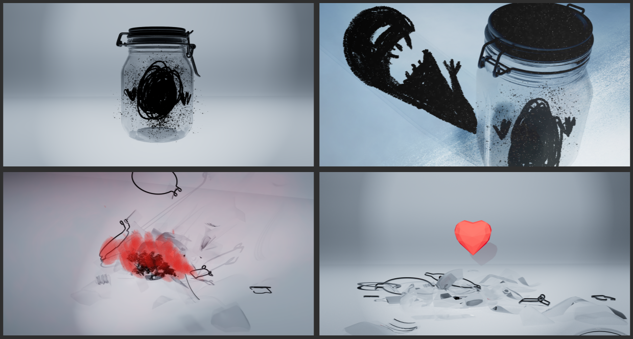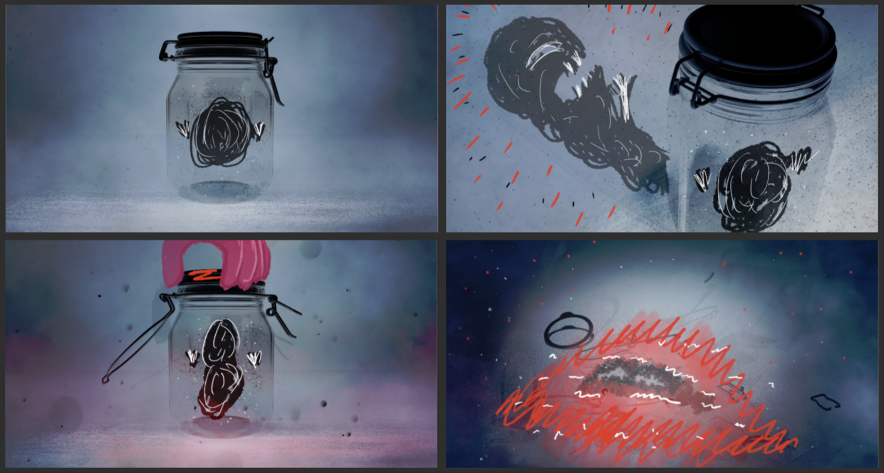 The character in the jar was based on these sketches I made in my sketchbook. The sketches themselves were inspired by the Rorschach test.